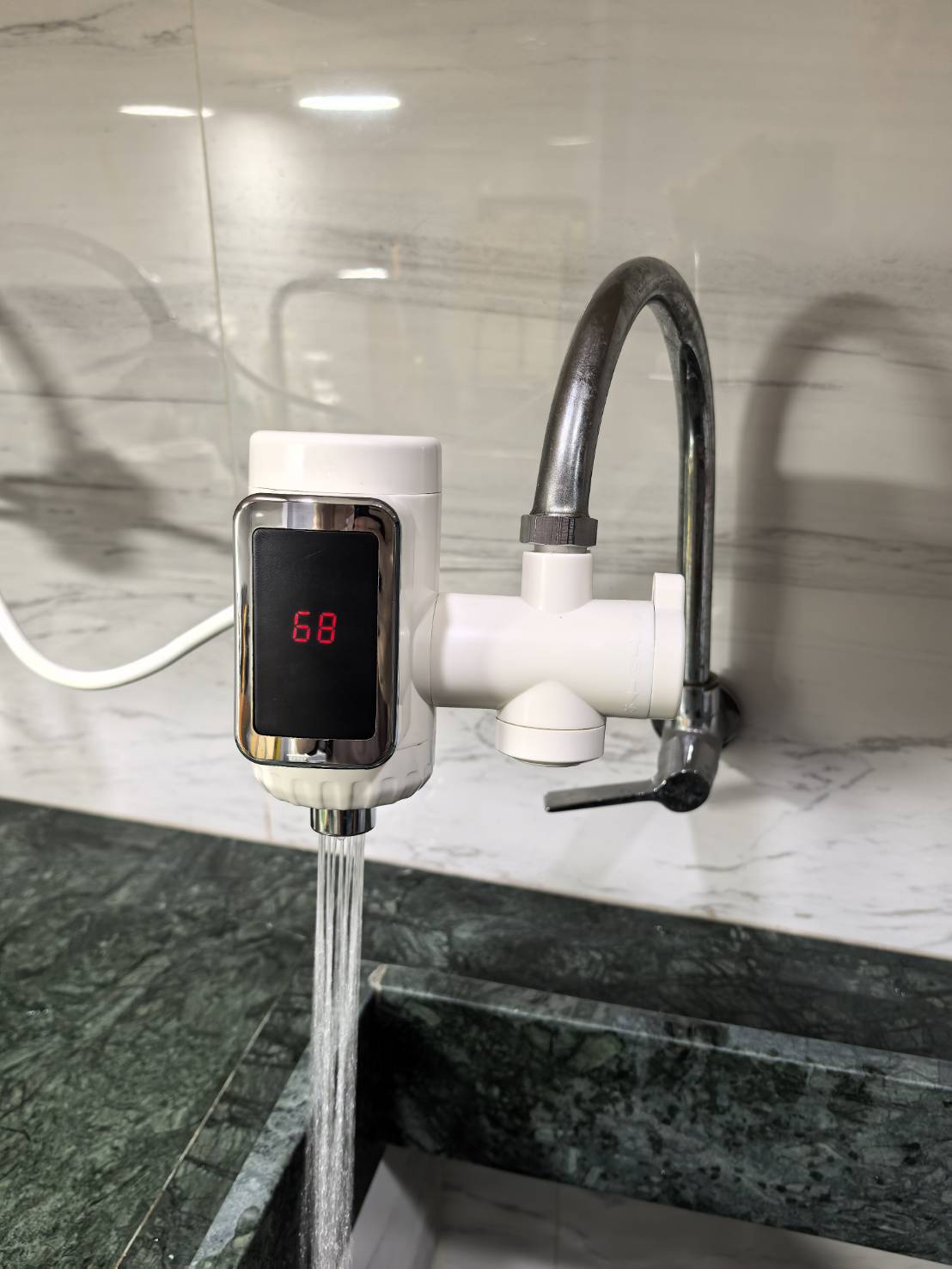 ก๊อกน้ำไฟฟ้า สามารถให้น้ำร้อน อุณหภูมิสูงสุด 70 องศา ด้วยวิธีที่ติดตั้งแสนง่ายดาย ก๊อกไฟฟ้าสามารถต่อเข้ากับท่อน้ำที่อ่างล้างมือได้เลยแล้วเสียบปลั๊ก หลังเปิดน้ำความร้อนจะออกมาอย่างรวดเร็ว ภายใน 5 วินาที มีตัวเลขโชว์อุณหภูมิแบบดิจิตัล ความร้อนของน้ำสามารถทำน้ำอุ่นตามที่ท่านต้องการเช่น ในห้องครัว ภัตตาคาร ร้านอาหาร โรงพยาบาล โรงแรม รีสอร์ท หอพัก คอนโด เครื่องซักผ้า สามารถใช้แทนเครื่องทำน้ำอุ่นได้ติดตั้งง่ายกว่าเครื่องทำน้ำอุ่นฯลฯ