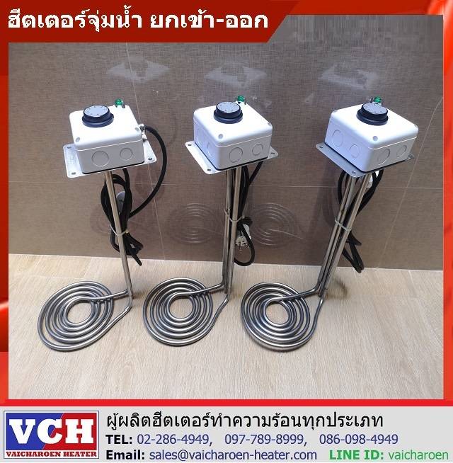 ฮีตเตอร์ต้มน้ำ เป็นฮีตเตอร์แบบจุ่ม ใช้สำหรับต้มหรืออุ่นของเหลวได้หลากหลายชนิด เช่น ต้มน้ำ อุ่นน้ำมัน